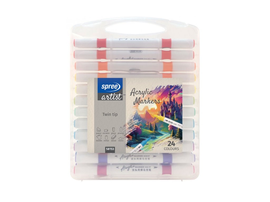 Sada 24ks, akrylové fixy, Spree Artist - 58153 je sada oboustranných akrylových fixu, lze použít na papír, textil, plast, sklo, keramiku, dřevo a kov