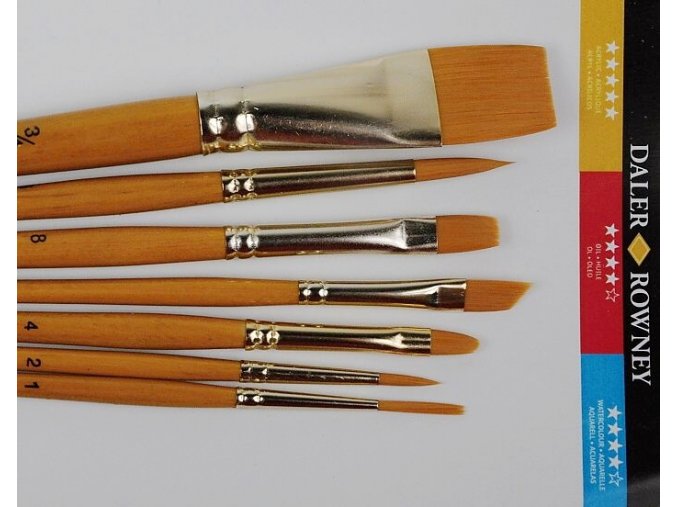 Sada štětců pro olej, akryl, akvarel Daler-Rowney SIMPLY 216920700 7ks. Kulaty č.2, 6, kočičí jazýček č. 4, plochý č. 8, linkovací č. 1, skosený 1/4", plochý 3/4"